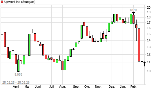 Mit dem Rücksetzer auf 10,56 EUR hat die Upwork-Aktie (ISIN US91688F1049) am 24.02.2026 ein neues 6-Monats-Tief erreicht und damit den Kurs vom 18.02.2026 eingestellt.