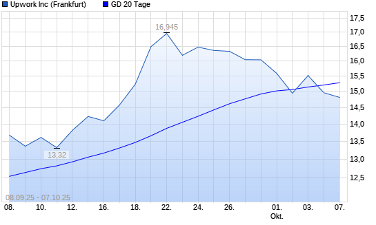 Mit dem Rücksetzer auf 14,95 EUR hat die Upwork-Aktie am 06.10.2025 die 20-Tage-Linie nach unten gekreuzt.