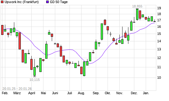Mit dem Rücksetzer auf 16,74 EUR hat die Upwork-Aktie am 19.01.2026 die 50-Tage-Linie nach unten gekreuzt.