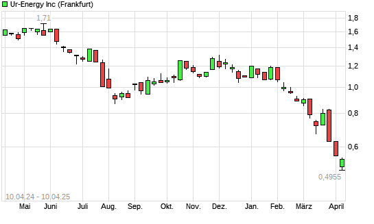 Mit dem Rücksetzer auf 0,50 EUR hat die Ur-Energy-Aktie (ISIN CA91688R1082) am 09.04.2025 ein neues 3-Jahres-Tief erreicht und damit den Kurs vom 07.04.2025 eingestellt.