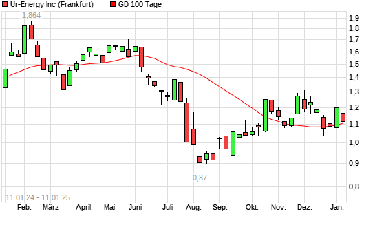 Mit dem Anstieg auf 1,12 EUR hat die Ur-Energy-Aktie am 10.01.2025 die 100-Tage-Linie nach oben gekreuzt.
