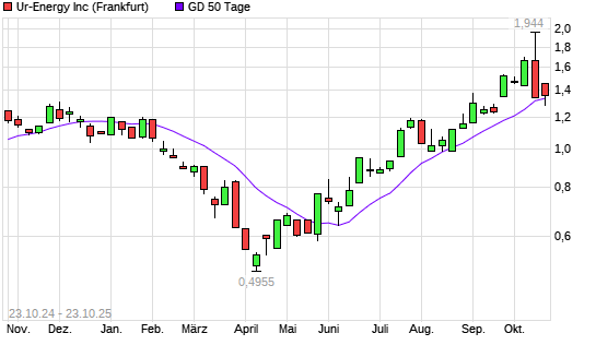 Mit dem Anstieg auf 1,36 EUR hat die Ur-Energy-Aktie am 22.10.2025 die 50-Tage-Linie nach oben gekreuzt.