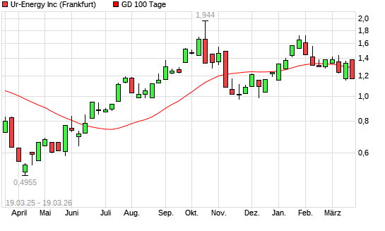 Mit dem Rücksetzer auf 1,24 EUR hat die Ur-Energy-Aktie am 18.03.2026 die 100-Tage-Linie nach unten gekreuzt.