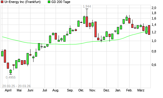 Mit dem Rücksetzer auf 1,14 EUR hat die Ur-Energy-Aktie am 19.03.2026 die 200-Tage-Linie nach unten gekreuzt.