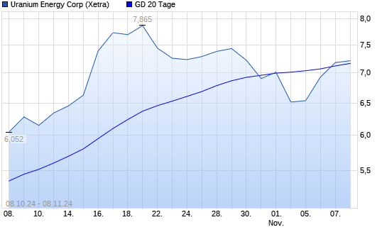 Mit dem Anstieg auf 7,29 EUR hat die Uranium Energy-Aktie am 07.11.2024 die 20-Tage-Linie nach oben gekreuzt.