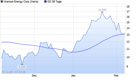 Mit dem Anstieg auf 13,41 EUR hat die Uranium Energy-Aktie am 06.02.2026 die 38-Tage-Linie nach oben gekreuzt.