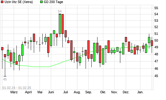 Mit dem Anstieg auf 49,20 EUR hat die Uzin Utz-Aktie am 31.01.2025 die 200-Tage-Linie nach oben gekreuzt.