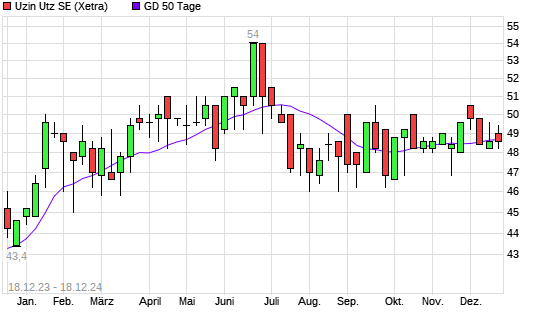 Mit dem Anstieg auf 48,40 EUR hat die Uzin Utz-Aktie am 17.12.2024 die 50-Tage-Linie nach oben gekreuzt.