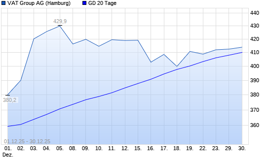 Mit dem Rücksetzer auf 414,00 EUR hat die VAT GROUP AG-Aktie am 29.12.2025 die 20-Tage-Linie nach unten gekreuzt.