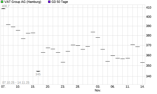 Mit dem Rücksetzer auf 355,10 EUR hat die VAT GROUP AG-Aktie am 13.11.2025 die 50-Tage-Linie nach unten gekreuzt.