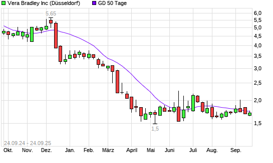 Mit dem Anstieg auf 1,77 EUR hat die VERA BRADLEY-Aktie am 23.09.2025 die 50-Tage-Linie nach oben gekreuzt.