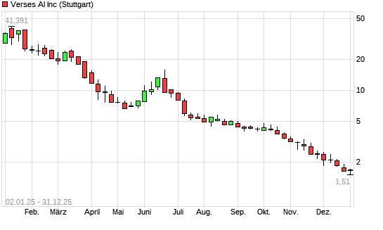 Mit dem Rücksetzer auf 1,35 EUR hat die VERSES TECHNOLOGIES CL.B-Aktie (ISIN CA92539Q6040) am 30.12.2025 ein neues All-Time-Low erreicht und damit den Kurs vom 16.12.2025 eingestellt.