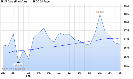 Mit dem Rücksetzer auf 16,72 EUR hat die VF Corporation-Aktie am 25.02.2026 die 20-Tage-Linie nach unten gekreuzt.Die VF Corporation-Aktie befindet sich seit dem 20.11.2025 ...weiterlesen