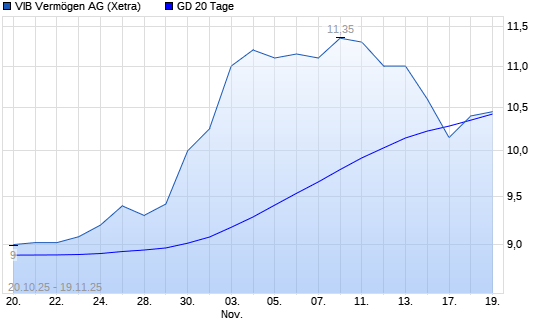 Mit dem Rücksetzer auf 10,15 EUR hat die VIB Vermogen AG-Aktie am 18.11.2025 die 20-Tage-Linie nach unten gekreuzt.