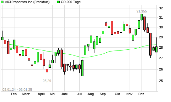 Mit dem Anstieg auf 28,96 EUR hat die VICI Properties-Aktie am 02.01.2025 die 200-Tage-Linie nach oben gekreuzt.
