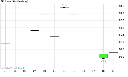 Mit dem Rücksetzer auf 79,40 EUR hat die VIDRALA SA INH.-Aktie (ISIN ES0183746314) am 18.11.2025 ein neues 12-Monats-Tief erreicht und damit den Kurs vom 04.11.2025 eingestellt.