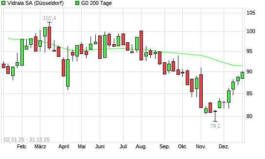 Mit dem Anstieg auf 89,10 EUR hat die VIDRALA SA INH.-Aktie am 30.12.2025 die 200-Tage-Linie nach oben gekreuzt.