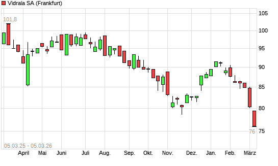 Mit dem Rücksetzer auf 78,30 EUR hat die VIDRALA SA INH.-Aktie (ISIN ES0183746314) am 04.03.2026 ein neues 12-Monats-Tief erreicht und damit den Kurs vom 03.03.2026 ...weiterlesen