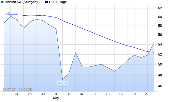 Mit dem Anstieg auf 52,10 EUR hat die VIRIDIEN-Aktie am 21.08.2025 die 20-Tage-Linie nach oben gekreuzt.