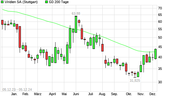 Mit dem Anstieg auf 42,87 EUR hat die VIRIDIEN-Aktie am 04.12.2024 die 200-Tage-Linie nach oben gekreuzt.