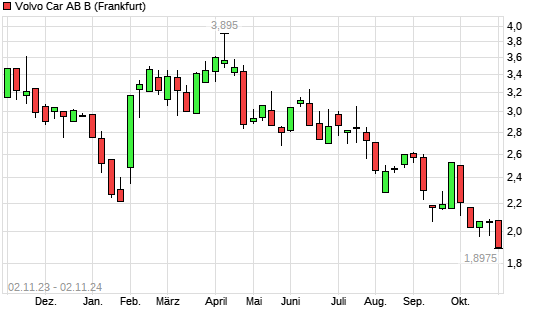Mit dem Rücksetzer auf 1,90 EUR hat die VOLVO CAR AB B-Aktie (ISIN SE0021628898) am 01.11.2024 ein neues All-Time-Low erreicht und damit den Kurs vom 23.10.2024 eingestellt.