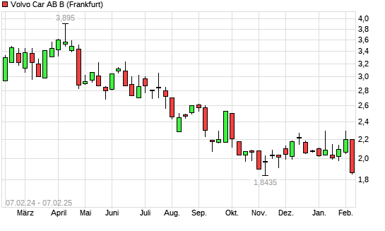 Mit dem Rücksetzer auf 1,87 EUR hat die VOLVO CAR AB B-Aktie (ISIN SE0021628898) am 06.02.2025 ein neues All-Time-Low erreicht und damit den Kurs vom 06.11.2024 eingestellt.