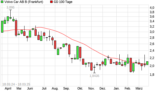 Mit dem Anstieg auf 2,07 EUR hat die VOLVO CAR AB B-Aktie am 17.03.2025 die 100-Tage-Linie nach oben gekreuzt.