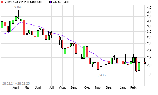 Mit dem Rücksetzer auf 2,06 EUR hat die VOLVO CAR AB B-Aktie am 27.02.2025 die 50-Tage-Linie nach unten gekreuzt.