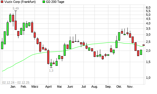 Mit dem Anstieg auf 2,28 EUR hat die VUZIX CORP. NEW-Aktie am 01.12.2025 die 200-Tage-Linie nach oben gekreuzt.