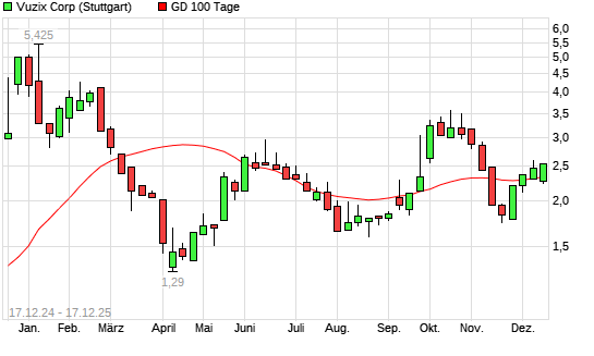 Mit dem Rücksetzer auf 2,24 EUR hat die VUZIX CORP. NEW-Aktie am 16.12.2025 die 100-Tage-Linie nach unten gekreuzt.