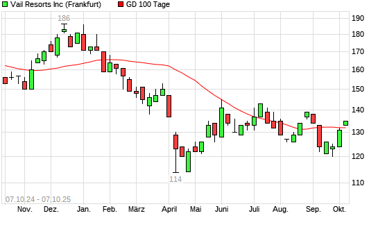 Mit dem Anstieg auf 135,00 EUR hat die Vail Resorts-Aktie am 06.10.2025 die 100-Tage-Linie nach oben gekreuzt.
