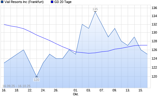 Mit dem Rücksetzer auf 126,00 EUR hat die Vail Resorts-Aktie am 15.10.2025 die 20-Tage-Linie nach unten gekreuzt.