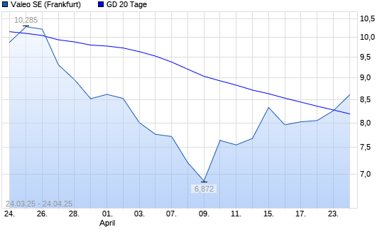 Mit dem Anstieg auf 8,26 EUR hat die Valeo-Aktie am 23.04.2025 die 20-Tage-Linie nach oben gekreuzt.