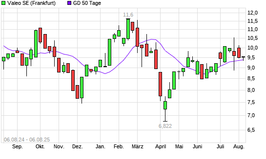 Mit dem Rücksetzer auf 9,34 EUR hat die Valeo-Aktie am 05.08.2025 die 50-Tage-Linie nach unten gekreuzt.