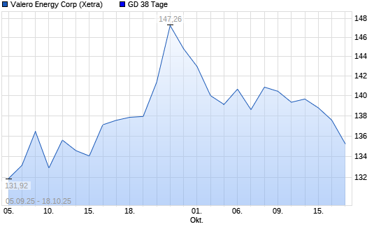 Mit dem Rücksetzer auf 135,28 EUR hat die Valero Energy-Aktie am 17.10.2025 die 38-Tage-Linie nach unten gekreuzt.