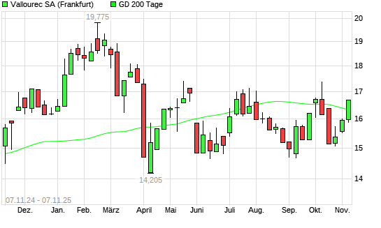 Mit dem Anstieg auf 16,45 EUR hat die Vallourec-Aktie am 06.11.2025 die 200-Tage-Linie nach oben gekreuzt.