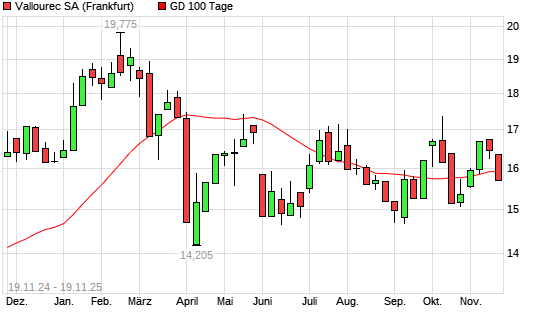 Mit dem Rücksetzer auf 15,72 EUR hat die Vallourec-Aktie am 18.11.2025 die 100-Tage-Linie nach unten gekreuzt.