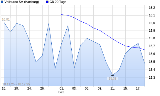 Mit dem Rücksetzer auf 15,41 EUR hat die Vallourec-Aktie am 17.12.2025 die 20-Tage-Linie nach unten gekreuzt.