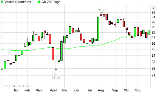 Mit dem Anstieg auf 28,31 EUR hat die Valmet-Aktie am 26.11.2025 die 200-Tage-Linie nach oben gekreuzt.