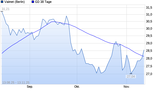 Mit dem Anstieg auf 28,46 EUR hat die Valmet-Aktie am 12.11.2025 die 38-Tage-Linie nach oben gekreuzt.