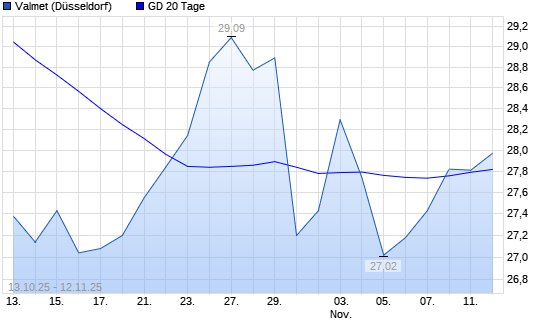 Mit dem Rücksetzer auf 27,75 EUR hat die Valmet-Aktie am 11.11.2025 die 20-Tage-Linie nach unten gekreuzt.