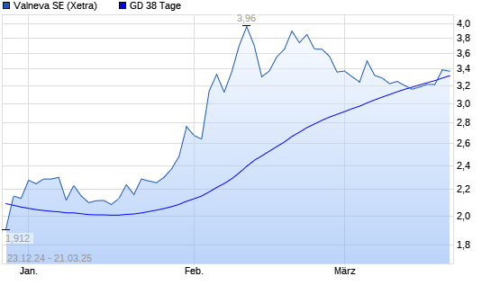 Mit dem Anstieg auf 3,32 EUR hat die Valneva-Aktie am 20.03.2025 die 38-Tage-Linie nach oben gekreuzt.