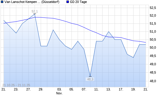Mit dem Anstieg auf 50,30 EUR hat die Van Lanschot Kempen-Aktie am 20.11.2025 die 20-Tage-Linie nach oben gekreuzt.