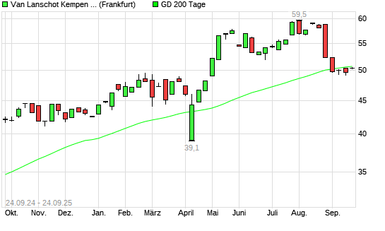 Mit dem Anstieg auf 50,50 EUR hat die Van Lanschot Kempen-Aktie am 23.09.2025 die 200-Tage-Linie nach oben gekreuzt.