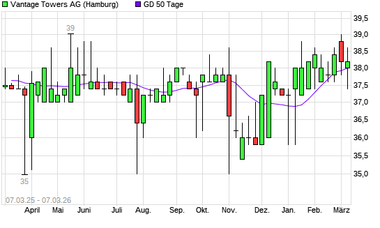 Mit dem Anstieg auf 38,20 EUR hat die Vantage Towers-Aktie am 06.03.2026 die 50-Tage-Linie nach oben gekreuzt.