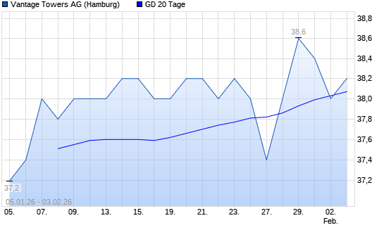 Mit dem Rücksetzer auf 38,00 EUR hat die Vantage Towers-Aktie am 02.02.2026 die 20-Tage-Linie nach unten gekreuzt.