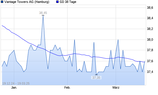 Mit dem Rücksetzer auf 37,40 EUR hat die Vantage Towers-Aktie am 18.03.2025 die 38-Tage-Linie nach unten gekreuzt.