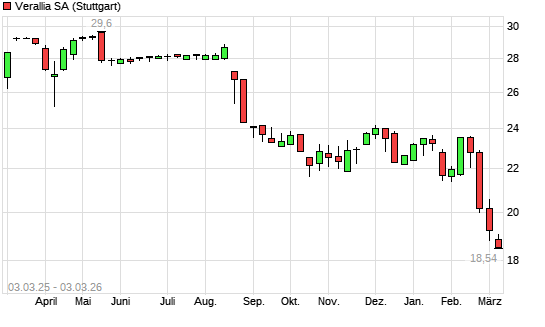 Mit dem Rücksetzer auf 18,99 EUR hat die Varallia SAS-Aktie (ISIN FR0013447729) am 02.03.2026 ein neues All-Time-Low erreicht und damit den Kurs vom 25.02.2026 eingestellt.