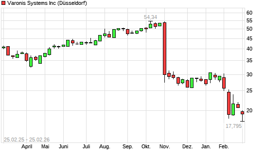 Mit dem Rücksetzer auf 17,88 EUR hat die Varonis Systems-Aktie (ISIN US9222801022) am 24.02.2026 ein neues 3-Jahres-Tief erreicht und damit den Kurs vom 09.02.2026 eingestellt.