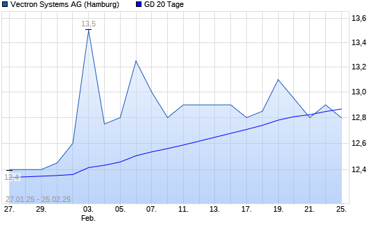 Mit dem Anstieg auf 12,90 EUR hat die Vectron Systems-Aktie am 24.02.2025 die 20-Tage-Linie nach oben gekreuzt.